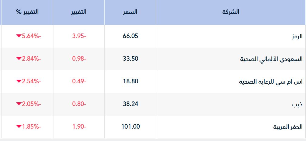 وفي المقابل، شهد 152 سهماً أداءً سلبيًا، تصدرها "الرمز " الذي هبط 5.64%، تلاه سهم "السعودى الألماني الصحية" بتراجع نسبته 2.84%.