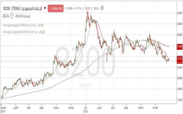 مباشر - للأبحاث: يتحرك سهم "الإعادة السعودية" ضمن اتجاه هابط يعكس ضغوطاً واضحة على الأداء السعري خلال الفترة الأخيرة، حيث نجح في الاستقرار أعلى مستوى دعم هام عند 25.80 ريال، ويظهر مؤشر القوة النسبية تباعداً إيجابياً؛ مما يعزز احتمالية تهدئة الضغط البيعي على المدى القصير.