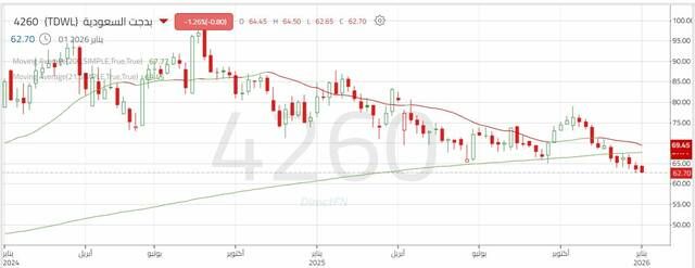 واختراق الدعم قد يدفع السعر نحو الدعم التالي عند 60.90 ريال، وإذا نجح في اختراق المستوى، سيكون المستوى التالي عند 57.30 ريال.