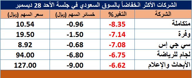 234 شركة مدرجة في "تاسي" تتراجع بجلسة الأحد.. و"طيران ناس" يحلق بنسبة 5%, اليوم الأحد 28 ديسمبر 2025 03:59 مساءً