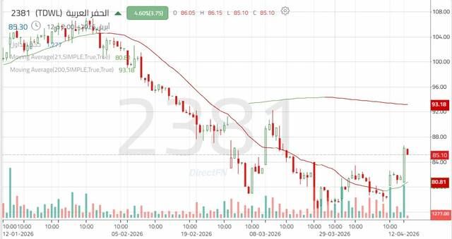 سهم "الحفر العربية" يستعيد الزخم الصاعد مع اختراق مستويات محورية, اليوم الأحد 12 أبريل 2026 02:41 مساءً