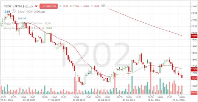 ويُعد الثبات أدنى هذا المستوى إشارة سلبية قد تدفع السهم نحو تراجعات إضافية باتجاه 16.30 – 16.00 ريال، وفي حال اختراق هذه المنطقة فقد يمتد الهبوط نحو مستوى الدعم التالي عند 15.70 ريال.