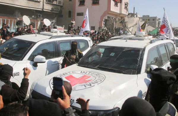 وأعلنت اللجنة الدولية للصــليب الأحمر تسلمها الدفعة الأولى من المحتجزين الإســرائيليين في قطاع غزة وعددهم سـبعة، وقامت بتسـليمهم إلى سـلطات الاحتلال الإسرائيلي، على أن تقوم بتسـلم بقية المحتجزين (13) في وقت لاحق من اليوم.