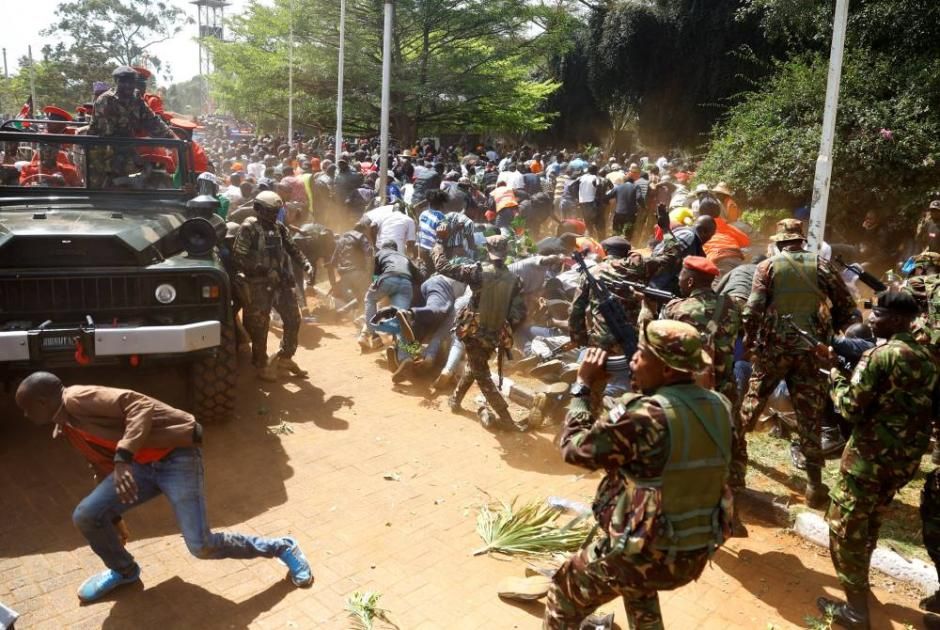 وخرجت حشود ضخمة إلى الشوارع في وقت مبكر من الخميس، واقتحمت المطار الرئيسي في البلاد عندما وصلت الطائرة التي كانت تنقل جثمانه ثم اخترقت بوابة ملعب نيروبي الذي استضاف الجثمان. وأطلقت قوات الأمن النار في الهواء ثم أطلقت الشرطة الغاز المسيل للدموع لتفريق الحشود.