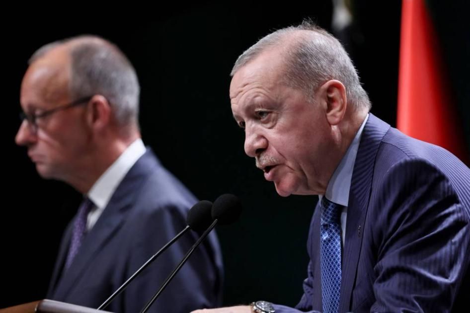 انتقد الرئيس التركي رجب طيب أردوغان ألمانيا بشدة، خلال مؤتمر صحفي مشترك مع المستشار الألماني فريدريش ميرتس في أنقرة الخميس، لما وصفه بتجاهلها «للإبادة الجماعية» التي تمارسها إسرائيل في غزة.