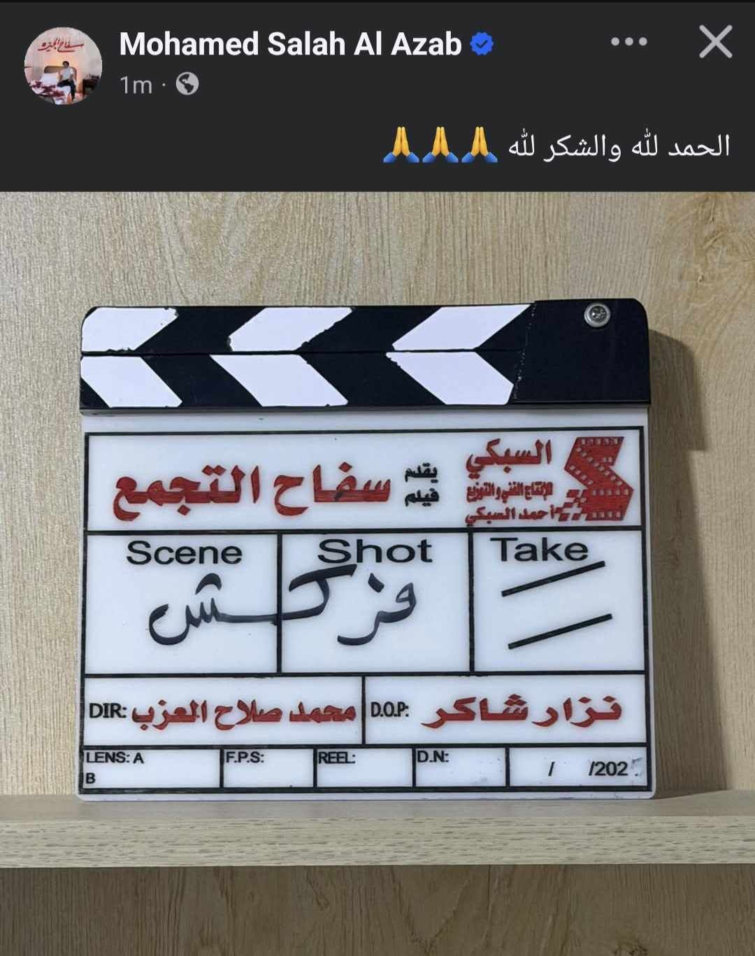 ونشر محمد صلاح العزب في منشوره الذي يرصده موقع تحيا مصر صورة كلاكيت العمل مكتوب عليه "فركش"، وعلق على المنشور وكتب: الحمدلله والشكر لله.