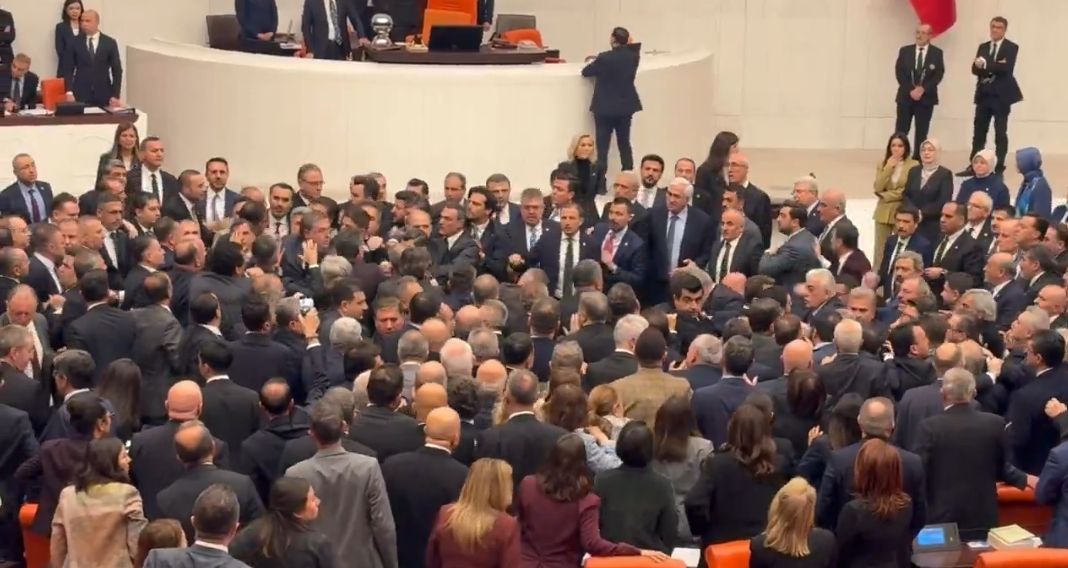وبينما وقف نائب رئيس مجموعة حزب الشعب الجمهوري علي ماهر باسارير للاحتجاج، تصاعد التوتر بين نواب حزب العدالة والتنمية ونواب حزب الشعب الجمهوري من تبادل كلامي إلى دفع، ثم إلى لكمات.