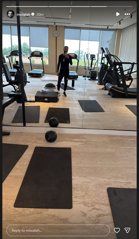 تحيا مصر، ونشر محمد صلاح صورة له، عبر حسابه الرسمي" إنتسجرام"، داخل الجيم حيث خاض تدريبات منفرداً استعداداً لمواجهة منتخب جنوب إفريقيا.