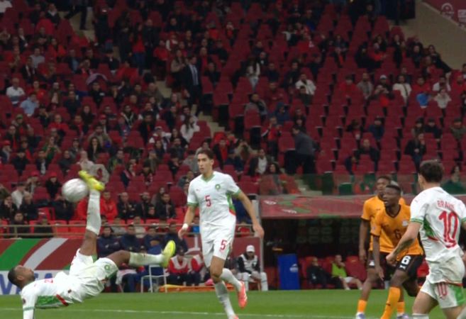 من كوكب آخر: أيوب الكعبي يسجل هدف عالمي لمنتخب المغرب في مرمى زامبيا بكأس أمم أفريقيا