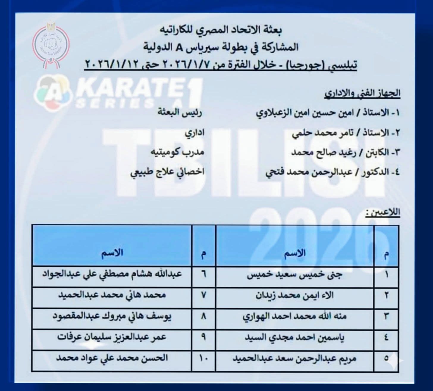 قائمة منتخب مصر للكاراتيه في بطولة سيرياس A الدولية بجورجيا
