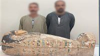 وبتقنين الإجراءات، تم استهداف المتهمين وضبطهما بدائرة المحافظة، حيث عُثر بحوزتهما على تابوت أثري كامل مكون من جزأين.