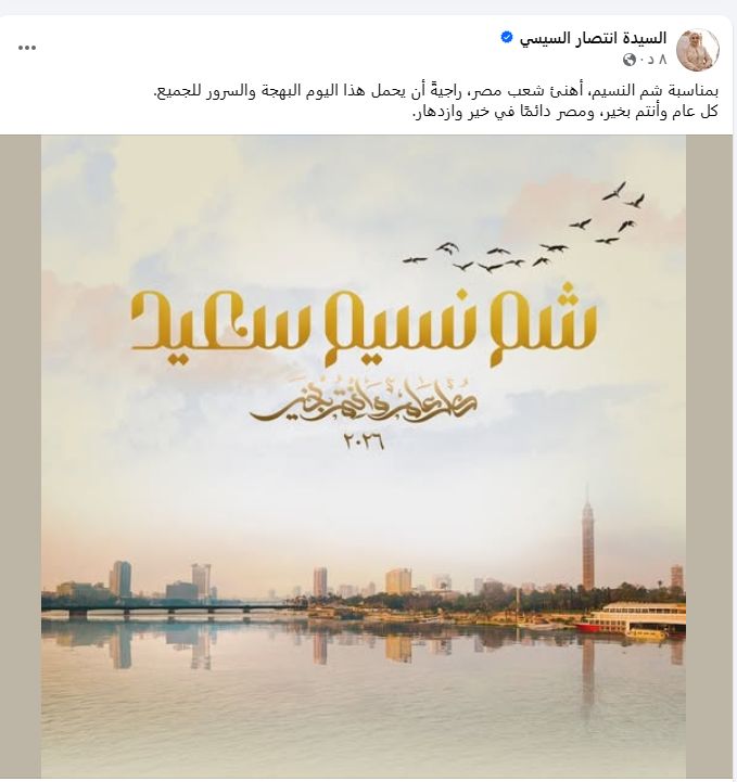 وأكدت قرينة الرئيس السيسي أن هذه المناسبة تعكس روحًا اجتماعية مميزة لدى المصريين، حيث يجتمع فيها الأهل والأصدقاء في أجواء من الفرح والاستمتاع بالطبيعة، بما يعزز قيم المحبة والترابط بين أفراد المجتمع.