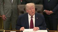وقال ترامب خلال توقيعه عدد من الأوامر التنفيذية في البيت الأبيض، السبت : "ليس لديهم أسطول بحري، وليس لديهم قوات جوية، وليس لديهم قادة، وليس لديهم أي شيء"، مضيفاً:"لا يمكن لإيران أن تبتزنا".