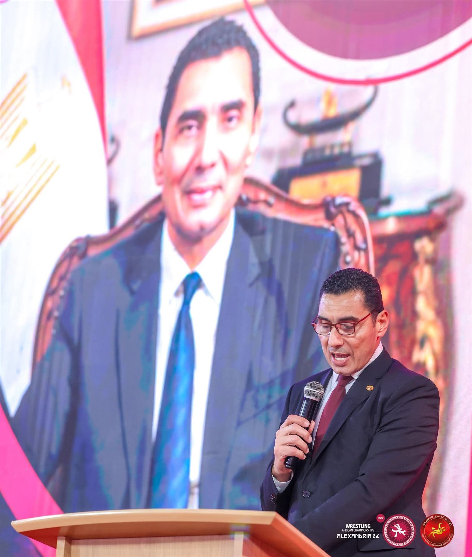 وشهد حفل الافتتاح حضور نيناد لالوفيتش رئيس الاتحاد الدولي للمصارعة وعضو اللجنة الأولمبية الدولية، واللواء أحمد ناصر رئيس اتحادية الكونفدراليات الرياضية الإفريقية «الأوكسا»، وفؤاد مسكوت نائب رئيس الاتحاد الدولي ورئيس الاتحاد الإفريقي للمصارعة، إلى جانب العميد سعيد صلاح رئيس الاتحاد المصري للمصارعة ونائب رئيس الاتحاد العربي للعبة، واللواء محمد محمود نائب رئيس الاتحاد المصري، والعميد إبراهيم عادل سكرتير عام الاتحاد المصري ومدير البطولة، والدكتورة صفاء الشريف وكيل الوزارة ومدير مديرية الشباب والرياضة بالاسكندرية، ورؤساء بعثات الوفود المشاركة، وعدد من قيادات الاتحاد المصري للمصارعة.