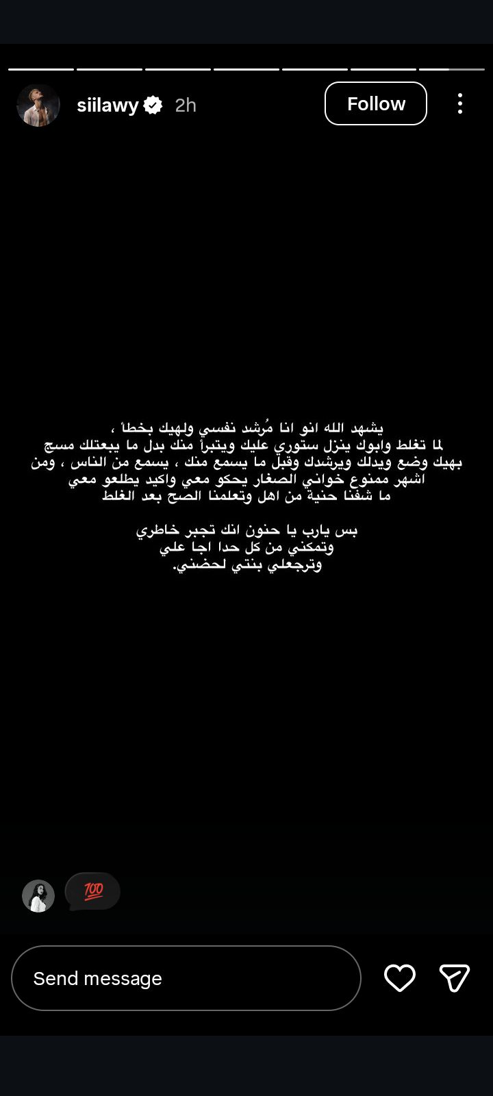 وقال السيلاوي في منشور رصده موقع تحيا مصر على حسابه الرسمي بموقع تبادل الصور والفيديوهات انستجرام: يشهد الله انو انا مُرشد نفسي ولهيك بخط، لما تغلط وابوك ينزل ستوري عليك ويتبرأ منك بدل ما يبعتلك مسج بهيك وضع ويدلك ويرشدك وقبل ما يسمع منك ، يسمع من الناس ، ومن أشهر مدموع خواني الصغار يحكو معي واكيد يطلعو معي ما شفنا حنية من اهل وتعلمنا الصح بعد الغلط.