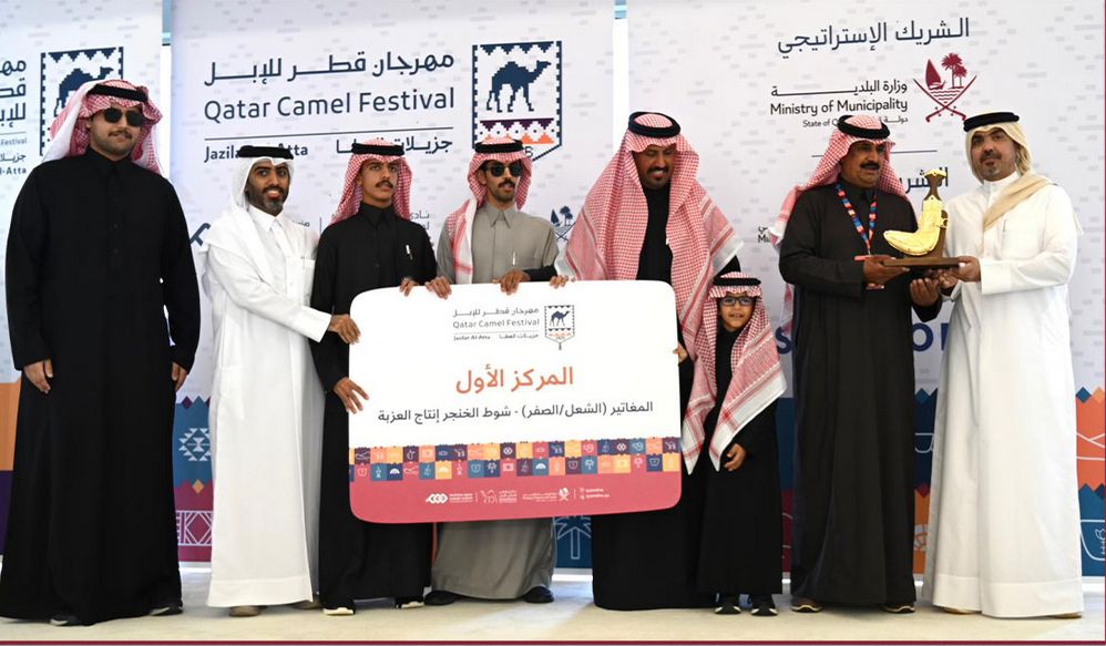 تتويج الفائزين في أشواط المغاتير إنتاج العزبة ضمن مهرجان قطر للإبل جزيلات العطا 2026