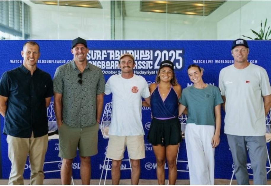وخلال اللقاء الإعلامي الرسمي الذي استضافه «سيرف أبوظبي»، تحدث جينسن ورايتشل تيلي بطلا العالم الحاليان في منافسات الرابطة العالمية لركوب الأمواج لفئة اللونج بورد تايلور، إلى جانب بطلي نسخة عام 2024 من بطولة أبوظبي ستيفن ساوير وأليس ليموين.