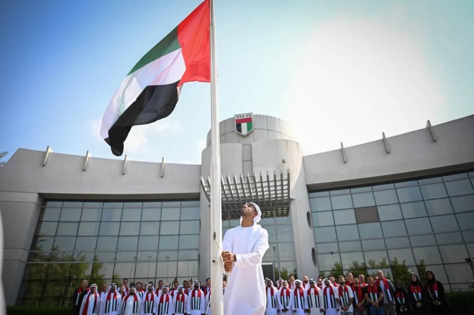 احتفل اتحاد الإمارات لكرة القدم بمقره في دبي بيوم العلم، وجدد منتسبو الاتحاد بهذه المناسبة عهد الولاء والوفاء لصاحب السمو الشيخ محمد بن زايد آل نهيان، رئيس الدولة، حفظه الله، وللقيادة الرشيدة، مؤكدين اعتزازهم بالمنجزات الوطنية الكبرى التي جعلت من دولة الإمارات نموذجاً عالمياً في التنمية والازدهار والتقدم.