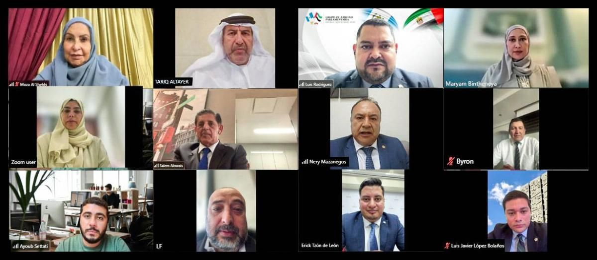 بحثت لجنة الصداقة البرلمانية للمجلس الوطني الاتحادي مع برلمانات دول أمريكا اللاتينية وأمريكا الشمالية، برئاسة الدكتور طارق حميد الطاير النائب الأول لرئيس المجلس، رئيس اللجنة، خلال اجتماع افتراضي مع لجنة الصداقة في مجلس الشعب الوطني بجمهورية غواتيمالا، برئاسة لويس ألبرتو رودريغيز رئيس لجنة الصداقة، سبل تعزيز التعاون البرلماني وتطوير العلاقات الثنائية بين المجلسين.