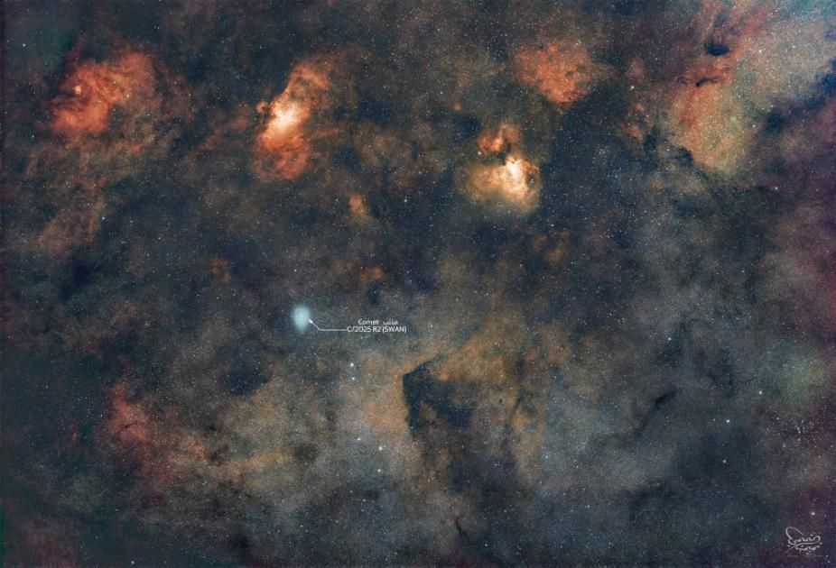 رصدت جمعية الإمارات للفلك المذنّب C/2025 R2 (SWAN)، الزائر القادم من أطراف النظام الشمسي، وذلك خلال مروره في موقع مميز بسماء الدولة 18 أكتوبر/تشرين الأول الجاري.