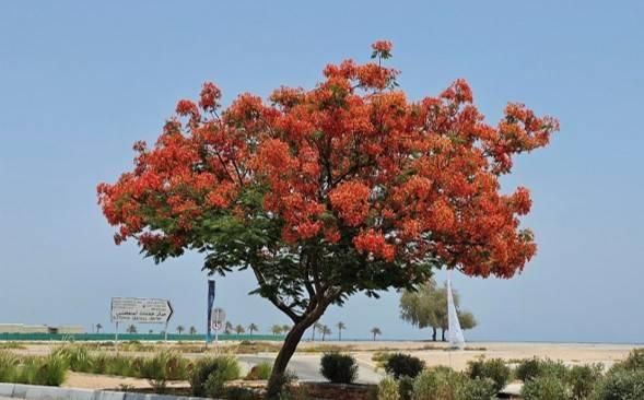 تزدان شوارع وحدائق مدينة دلما بأشجار البوانسيانا المزهرة، التي تضفي بتدرجات ألوانها الحمراء والبرتقالية لمسة جمالية خاصة على المشهد الحضري للمدينة، وتولي بلدية منطقة الظفرة اهتماماً كبيراً بالتشجير والتوسع في الغطاء النباتي، ضمن استراتيجيتها لزيادة المساحات الخضراء، وتحسين جودة الحياة، وتوفير بيئة صحية ومستدامة للسكان والزوار.
