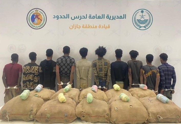 تمكنت الدوريات البرية لحرس الحدود في قطاع الدائر بمنطقة جازان من القبض على (10) مخالفين لنظام أمن الحدود من الجنسية الإثيوبية، لتهريبهم (180) كيلوجرامًا من نبات القات المخدر