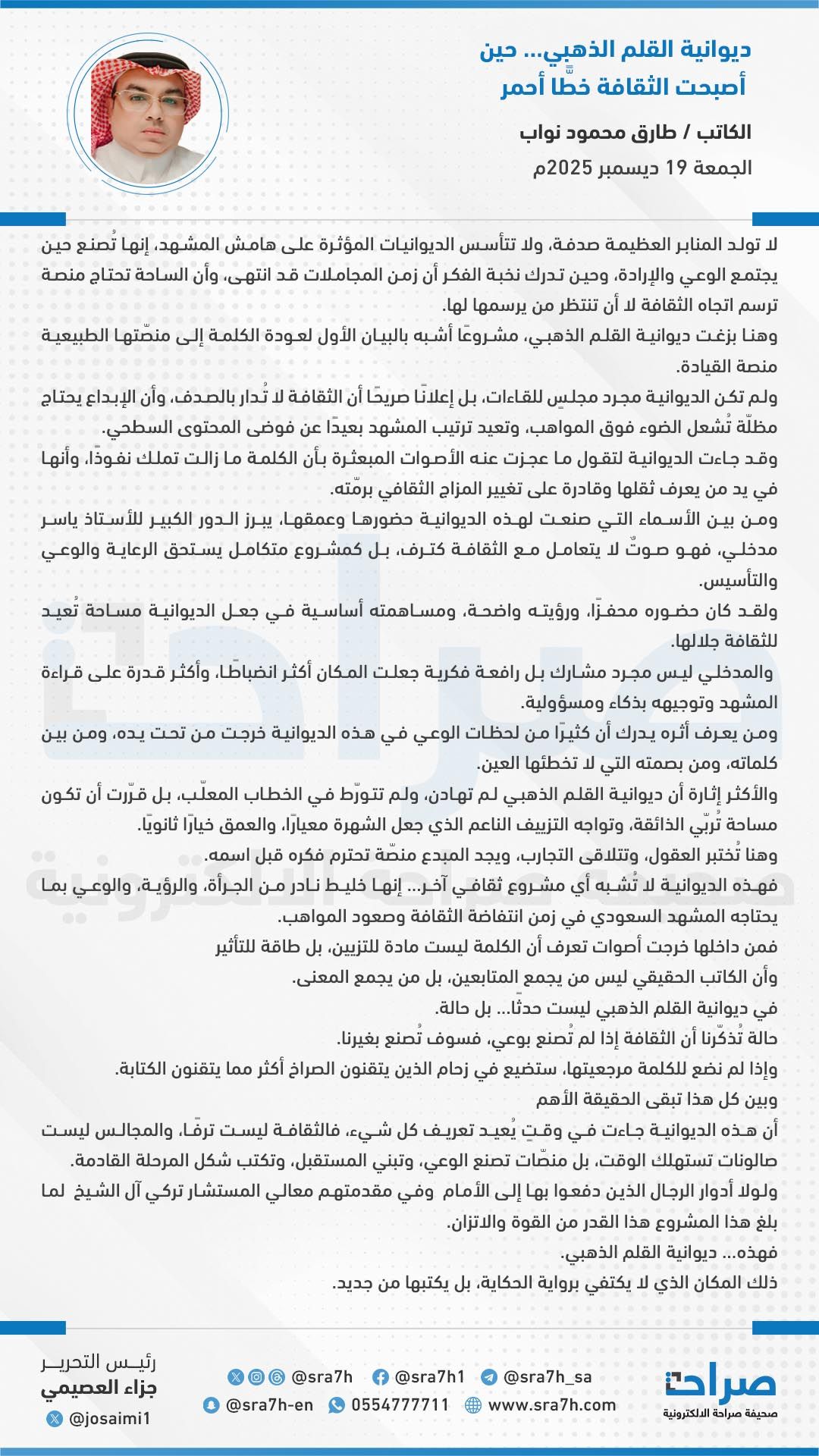 لا تولد المنابر العظيمة صدفة، ولا تتأسس الديوانيات المؤثرة على هامش المشهد، إنها تُصنع حين يجتمع الوعي والإرادة، وحين تدرك نخبة الفكر أن زمن المجاملات قد انتهى، وأن الساحة تحتاج منصة ترسم اتجاه الثقافة لا أن تنتظر من يرسمها لها.