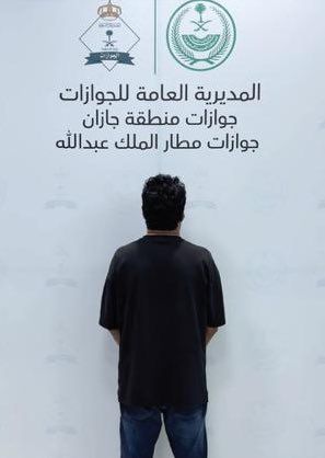 ضبطت جوازات منطقة جازان ممثلة في جوازات مطار الملك عبدالله بن عبدالعزيز الدولي، وافدًا من الجنسية اليمنية؛ وذلك لمحاولته دخول المملكة بطريقة غير مشروعة.