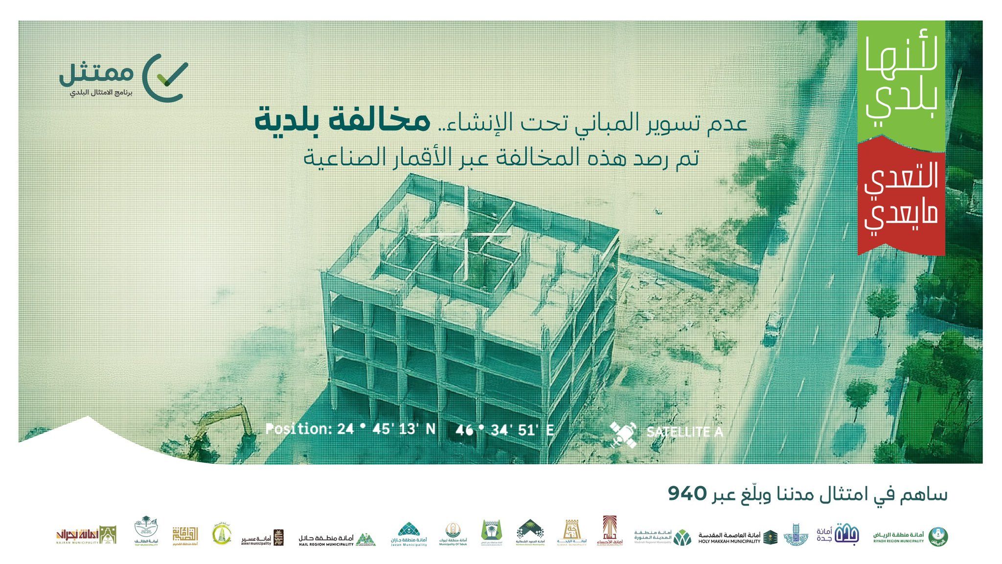 أكد برنامج الامتثال البلدي أن الجهات الرقابية رصدت تعدي يتعلق بعدم تسوير المباني تحت الإنشاء عبر الأقمار الصناعية، والتي تُعد من المخالفات البلدية التي قد تؤدي إلى مخاطر جسيمة على السلامة العامة.