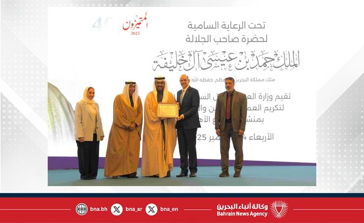 المنامة في 24 ديسمبر /بنا/ تحت رعاية حضرة صاحب الجلالة الملك حمد بن عيسى آل خليفة، ملك البلاد المعظم حفظه الله ورعاه، وبمناسبة احتفال مملكة البحرين بأعيادها الوطنية وعيد الجلوس السادس والعشرين لحضرة صاحب الجلالة ملك البلاد المعظم حفظه الله ورعاه، وما يصاحبها من مناسبات وطنية، أقامت وزارة العمل، اليوم الأربعاء، الحفل السنوي الـ(40) لتكريم العمال المجدين والمتفوقين في منشآت القطاع الأهلي، حيث تم تكريم نخبة من رواد العمل ومسؤولي الموارد البشرية، إلى جانب منشآت وعمال متميزين من مختلف القطاعات الإنتاجية والاقتصادية في مملكة البحرين.