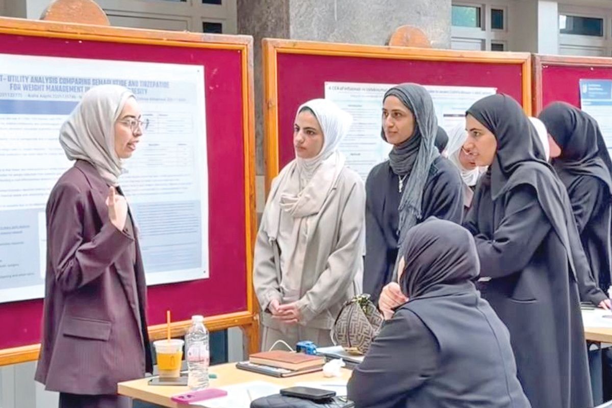 وقد عرض الطلبة مجموعة من الملصقات العلمية، التي تناولت موضوعات متقدمة في مجال اقتصاديات الدواء، تم خلالها طرح أفكارٍ بحثية تُسهم في تطوير الدراسات المستقبلية بهذا المجال الحيوي، واستعراض طُرق التحليل الاقتصادية التي تساعد في اختيار الدواء الأمثل، بما يحقق التوازن بين الكفاءة العلاجية والسعر، إضافة إلى إبراز أهمية أساسيات الاقتصاد الدوائي في تقليل التكلفة على الدولة عبر الإدارة الرشيدة للموارد، وكذلك تقديم مقارنات علمية بين أنواع الأدوية، لتوضيح الفروق في الفاعلية والتكلفة، بما يعزز اتخاذ القرار الصيدلاني المبني على الأدلة.