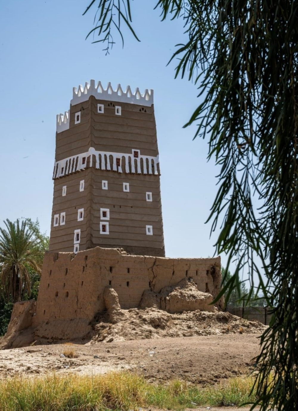 وتتكوّن القرية من اثني عشر قصرًا شُيّدت باستخدام الطين ومواد محلية مثل الخشب وجذوع النخيل، وفق أسلوب معماري اشتهرت به المنطقة، ولم تكن هذه القصور مجرد مساكن، بل أدّت دور الحصون التي احتضنت عائلات بأكملها، وصُممت لتتلاءم مع البيئة المحيطة، موفرة الحماية والأمان لسكانها، حيث يحكي كل قصر قصةً من قصص الحياة الاجتماعية والاقتصادية التي كانت سائدة آنذاك، ويعكس نمط العيش القائم على الزراعة والتكافل الاجتماعي.