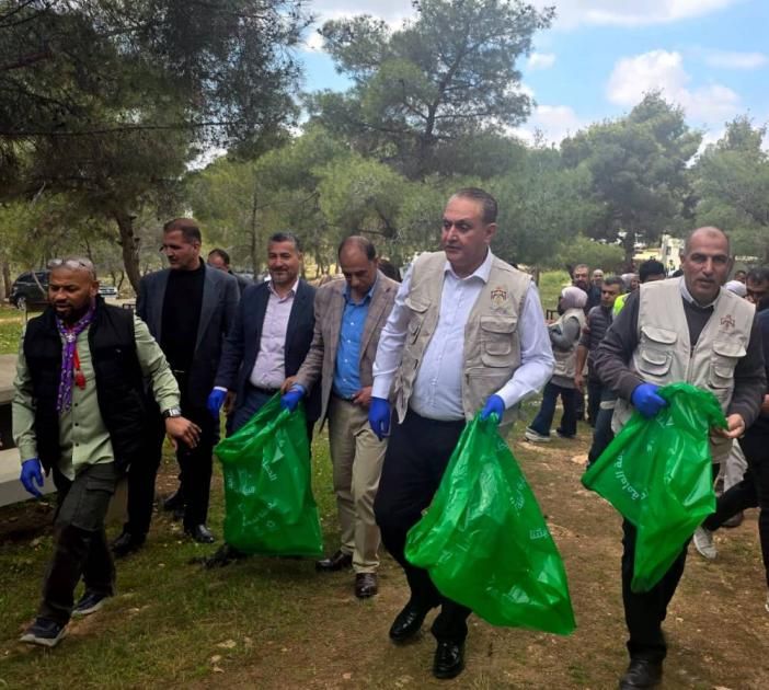 وشارك سليمان في جمع النفايات ميدانياً إلى جانب مسؤولين وعاملين في مديريات ومراكز في المحافظة ومتطوعين وطلبة مدارس.