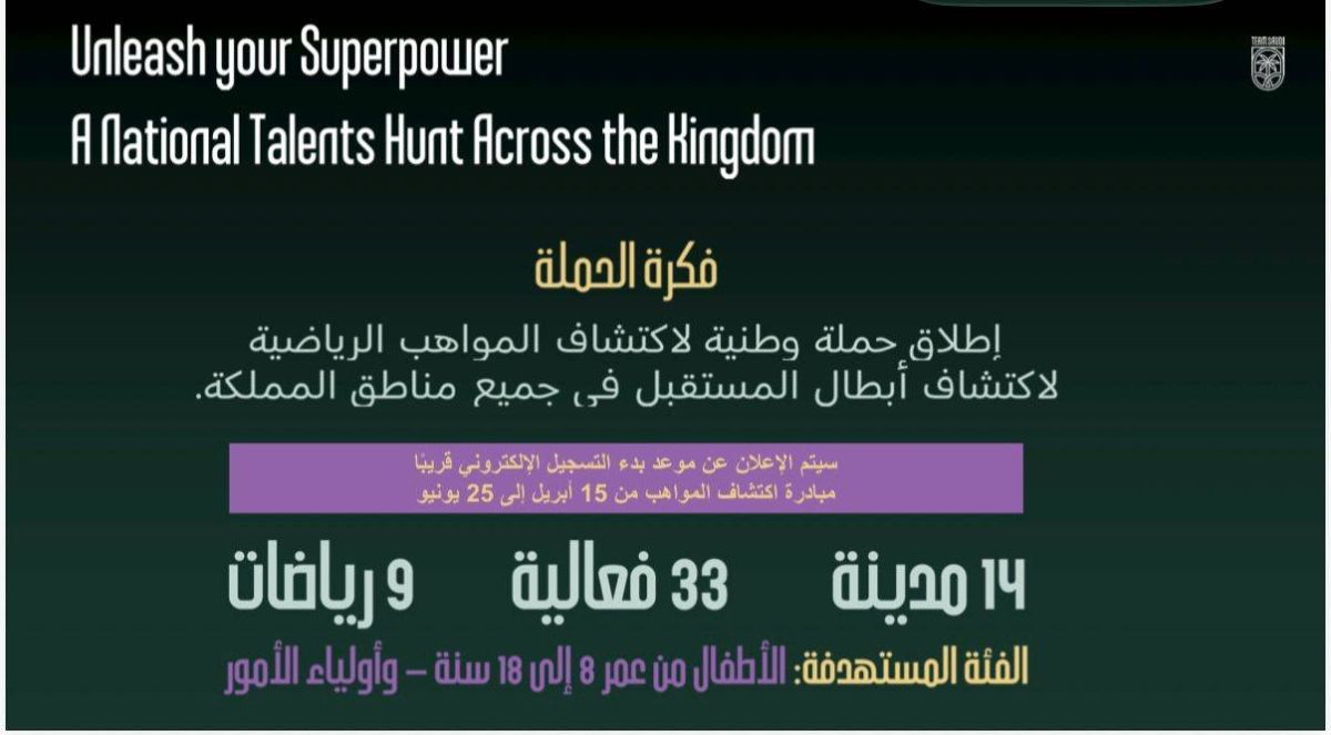 وتأتي هذه المبادرة ضمن الجهود الوطنية لدعم القطاع الرياضي واكتشاف أبطال المستقبل بما يتماشى مع مستهدفات رؤية المملكة في تعزيز جودة الحياة وتنمية القدرات البشرية.