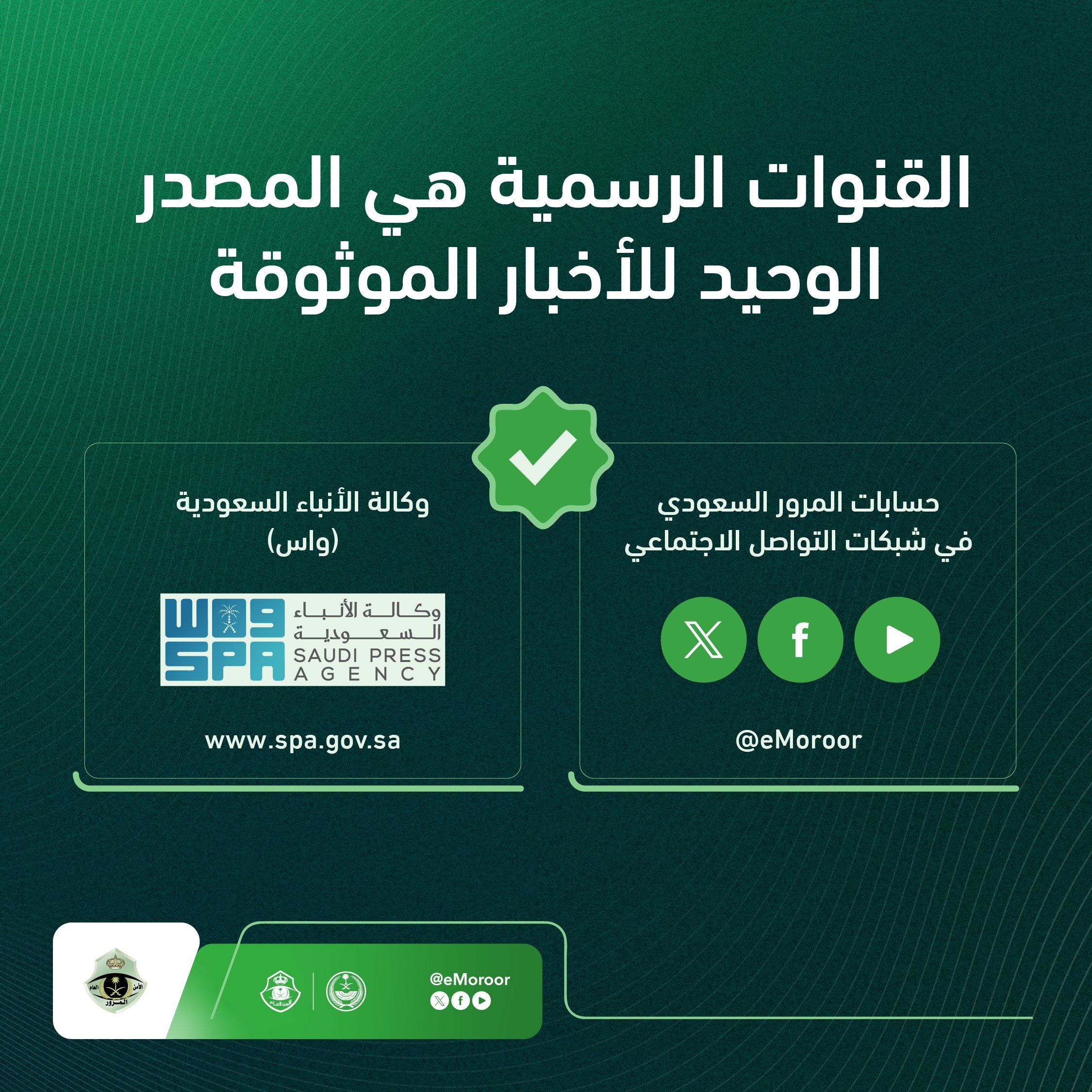 المرور السعودي يؤكد ..القنوات الرسمية المصدر الوحيد للأخبار الموثوقة