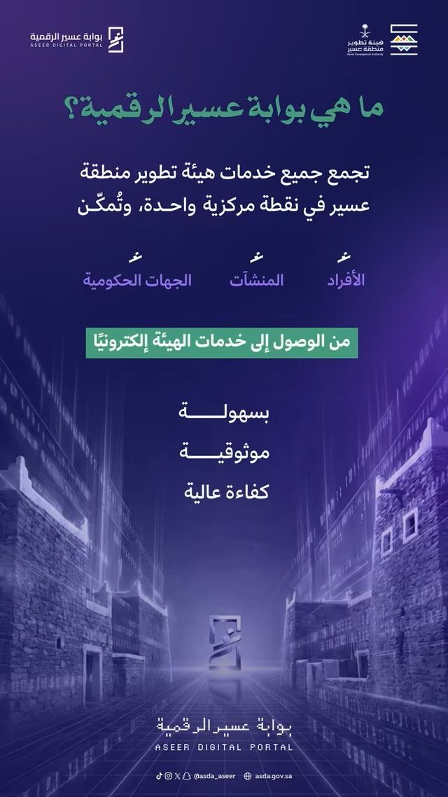 أطلقت هيئة تطوير منطقة عسير “بوابة عسير”، وهي منظومة رقمية موحّدة تجمع جميع خدمات الهيئة في نقطة مركزية واحدة، بهدف تسهيل وصول الأفراد وقطاع الأعمال والجهات الحكومية إلى الخدمات إلكترونيًا، وبمستوى عالٍ من الكفاءة والموثوقية.