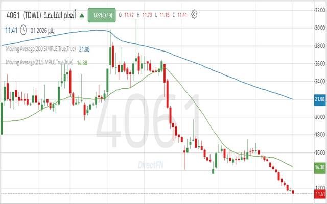 سهم "أنعام القابضة" ضمن اتجاه هابط يعكس سيطرة القوة البيعية, اليوم الاثنين 29 ديسمبر 2025 02:48 مساءً