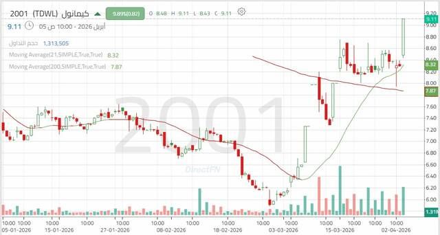سهم "كيمانول": إشارات فنية داعمة لاستمرار الحركة التصحيحية الصاعدة, اليوم الأحد 5 أبريل 2026 11:06 صباحاً