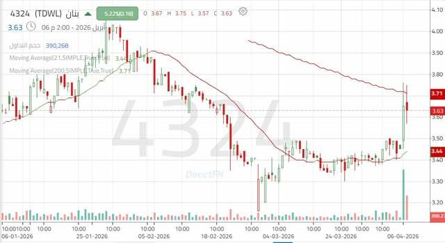 ارتداد سهم "بنان" من أدنى مستوياته التاريخية بدعم من أحجام التداول, اليوم الاثنين 6 أبريل 2026 05:00 مساءً