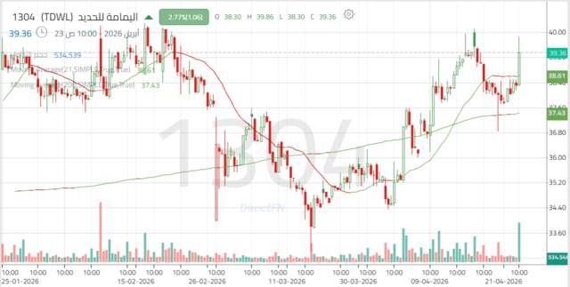 مباشر للأبحاث: نجح سهم اليمامة للحديد في إعادة اختبار مستوى الدعم 37.40 ريال، مع ظهور إشارات فنية إيجابية تعكس تحسناً في السلوك السعري.