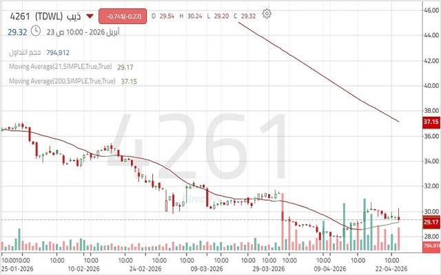 سهم "ذيب" يتحرك في اتجاه هابط رئيسي مع استمرار الضغوط البيعية, اليوم الخميس 23 أبريل 2026 02:22 مساءً