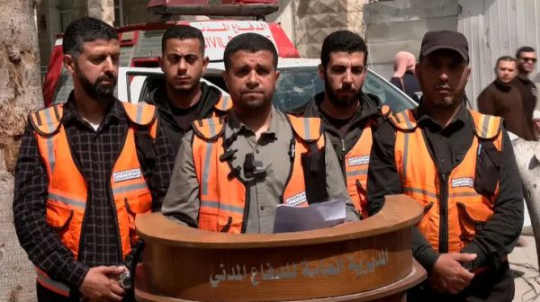 وطالب الدفاع المدني المجتمع الدولي بالتدخل الفوري والضغط على الاحتلال لضمان تطبيق القانون الدولي الإنساني وحماية عمال الإغاثة والفرق الطبية.