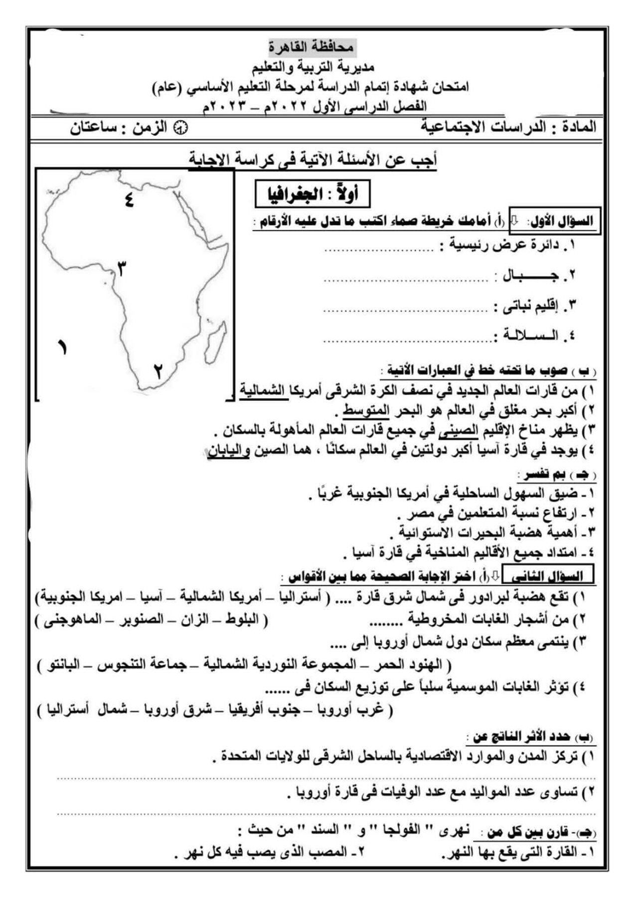 وتحرص المديريات التعليمية على إعلان ونشر نماذج استرشادية وبوكليتات تدريبية قبل موعد الامتحانات، لمساعدة الطلاب على التعرف على شكل الأسئلة وطريقة الإجابة الصحيحة، خاصة أن مادة الدراسات الاجتماعية تعتمد بشكل كبير على الفهم والتحليل وليس الحفظ فقط.