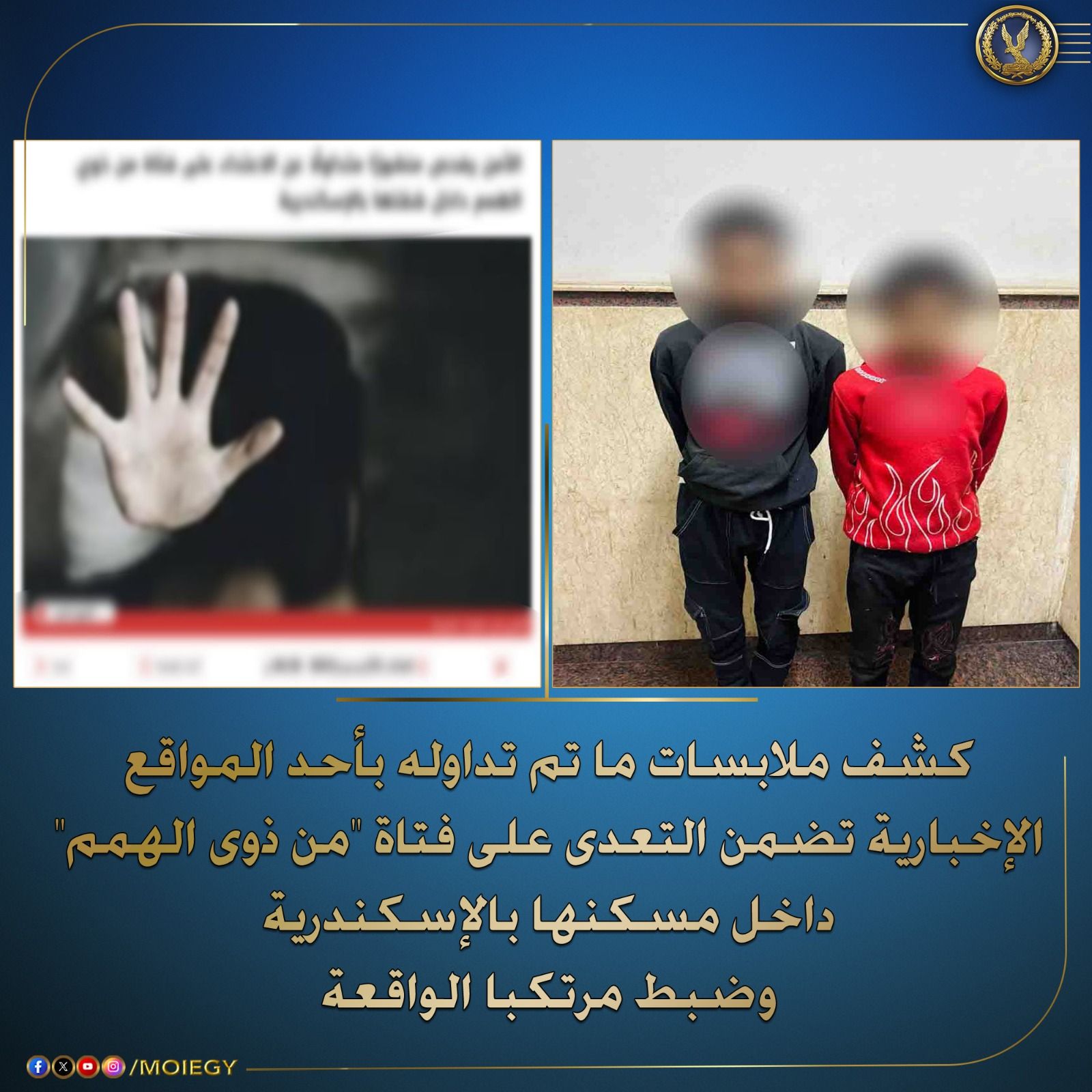 في إطار جهود أجهزة وزارة الداخلية لكشف ملابسات ما جرى تداوله بأحد المواقع الإخبارية بشأن واقعة التعدي على فتاة من ذوي الهمم داخل مسكنها بمحافظة الإسكندرية، باشرت الأجهزة الأمنية الفحص والتحري للوقوف على حقيقة الواقعة واتخاذ الإجراءات القانونية اللازمة.