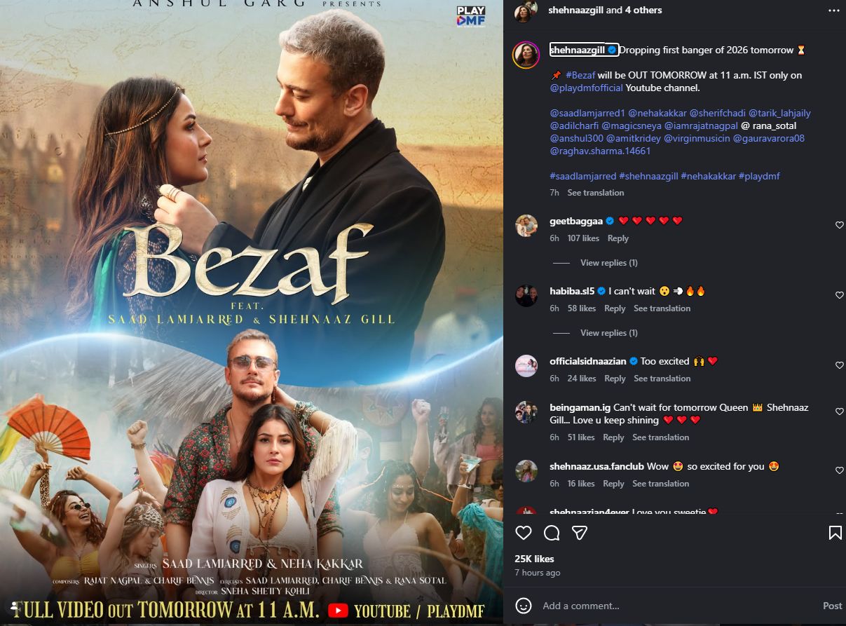 وأعلن الفنان سعد لمجرد عن موعد طرح أغنيته الجديدة بزاف، وفقا لما رصده موقع تحيا مصر، عبر صفحته الرسمية على موقع التواصل الاجتماعي إنستجرام، قائلا: غدا طرح أغنية بزاف، الساعة 11 صباحاً بتوقيت الهند.