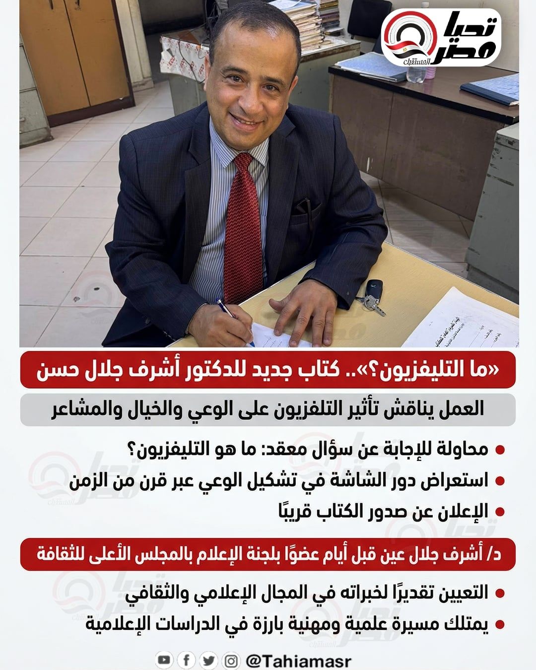 توقيع عقد نشر العمل مع الهيئة المصرية العامة للكتاب.. وتكليف حديث بعضوية لجنة الإعلام بالمجلس الأعلى للثقافة