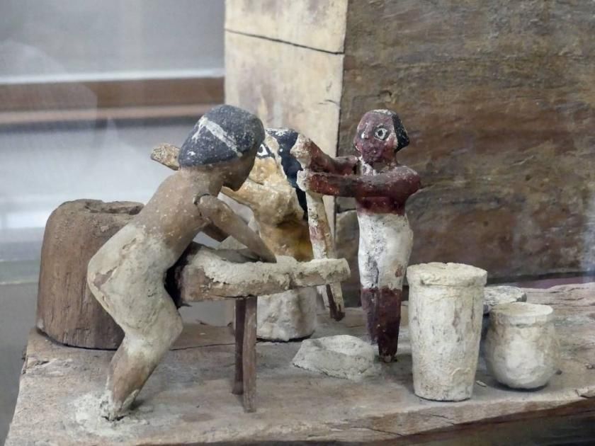 ويضم متحف الحضارة، مجموعة من التماثيل التي ترصد ملامح صناعة الخبز في مصر القديمة، بعضها لعمال خلال تحضيرهم للخبز في تلك الفترة، وأخري توضح كيف كان يتم تحضير الدقيق وطحنه، قبل تحويله إلى قطع من الخبز، الذي أطلقت عليه أسماء كثيرة.
