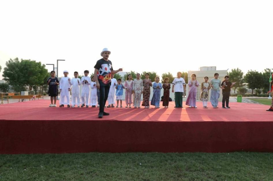 وخلال البرنامج، قدمت «منشن» لتنظيم الفعاليات عروض دمى تجمع بين المتعة والتعليم من خلال سرد قصص هادفة، وقدم فريق «سيرك الإمارات» عروضاً بهلوانية تجمع بين الحركات الرياضية والفنية. وصاحب الفعالية ورش فنية وإبداعية شارك فيها مختلف الفئات العمرية بهدف تنمية الإبداع لدى الأطفال، وحضرت شخصيات كرتونية تفاعل معها الجمهور، وقدمت الدائرة مسابقات ثقافية وحركية شارك فيها الحضور.