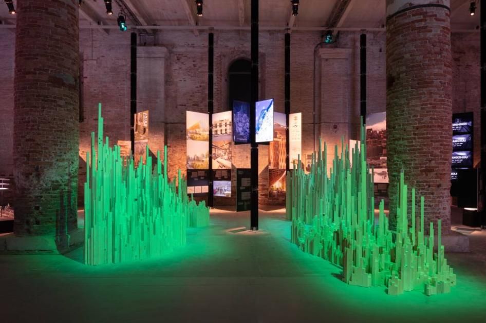 ويتضمن هذا العرض هياكل تشبه ناطحات السحاب، تمثل مستويات ونسبة الخضرة في هذه المدن، في تجسيد بصري لافت يبرز الدور الحاسم للأشجار والغابات الحضرية في مواجهة ارتفاع درجات الحرارة عالمياً.