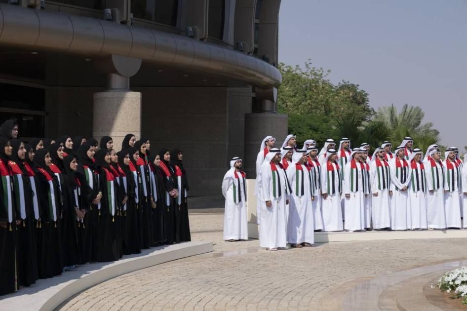 شهدت مراسم الاحتفال الرسمي، التي حضرها عددٌ من موظفي ديوان ممثل الحاكم في منطقة العين، عزفَ السلام الوطني ورفعَ العلم على سارية الديوان.